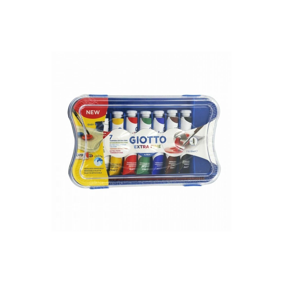 Confezione da 12 Giotto Tempera Extra Fine, tempera a base d'acqua. Tavolozza removibile inclusa. Dotato di pennello in pelo sintetico.