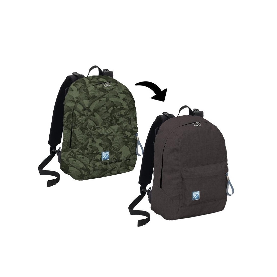 Zaino reversibile, ti da la possibilità di avere due zaini in uno solo. Su ogni lato è presente una tasca per rendere lo zaino ancora più spazioso. Cuffie in omaggio. Dotato di unico scomparto con schienale imbottito e rivestito in tessuto. Gli spallacci sono imbottiti e rivestiti in rete traspirante.