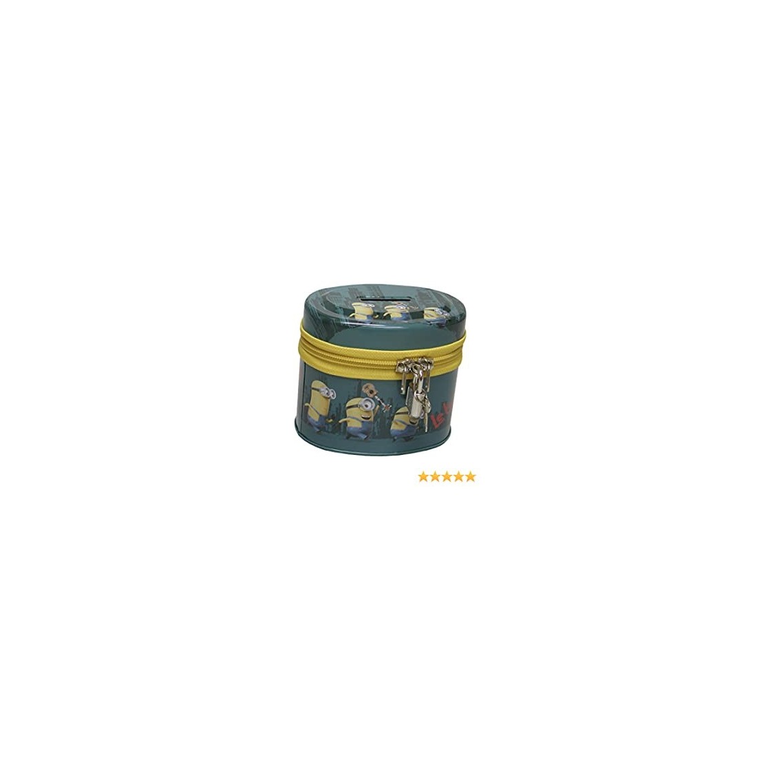Salvadanaio Minions serventi in metallo. Pratico salvadanaio per bambini con chiusura a cerniera e sicurezza con lucchetto per tenere al sicuro i propri soldini, per custodire la propria paghetta.
