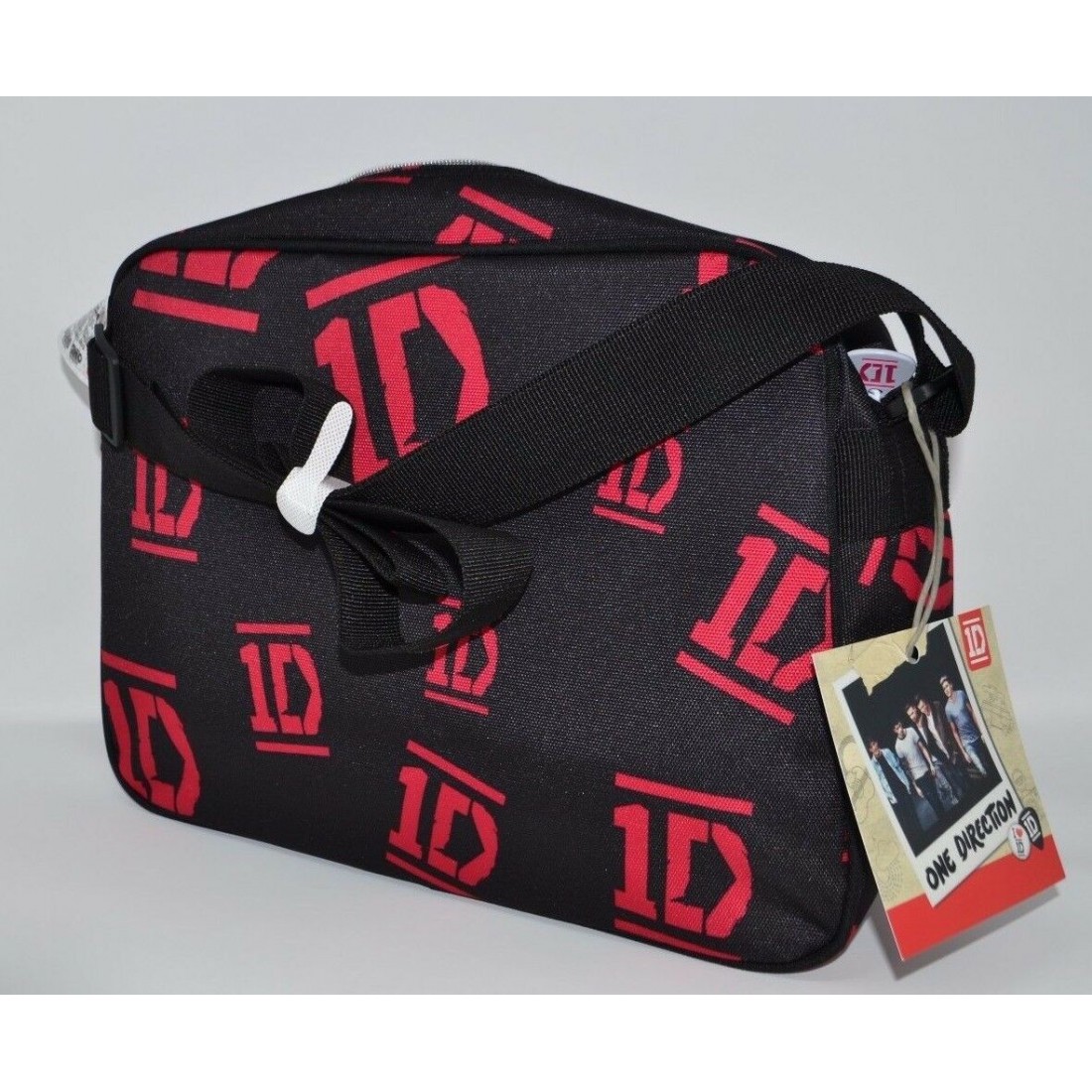 Borsa tracolla One Direction. Ideale per il tempo libero, per la scuola, per contenere qualsiasi cosa tu voglia dai libri ai quaderni alle trousse. Chiusura con pratica cerniera e tracolla regolabile in base alle proprie esigente.