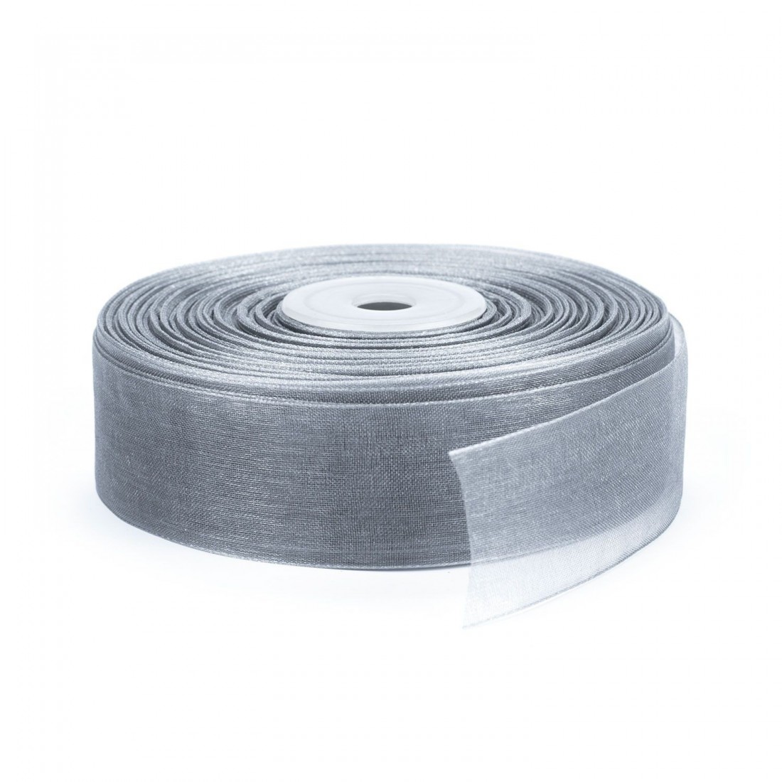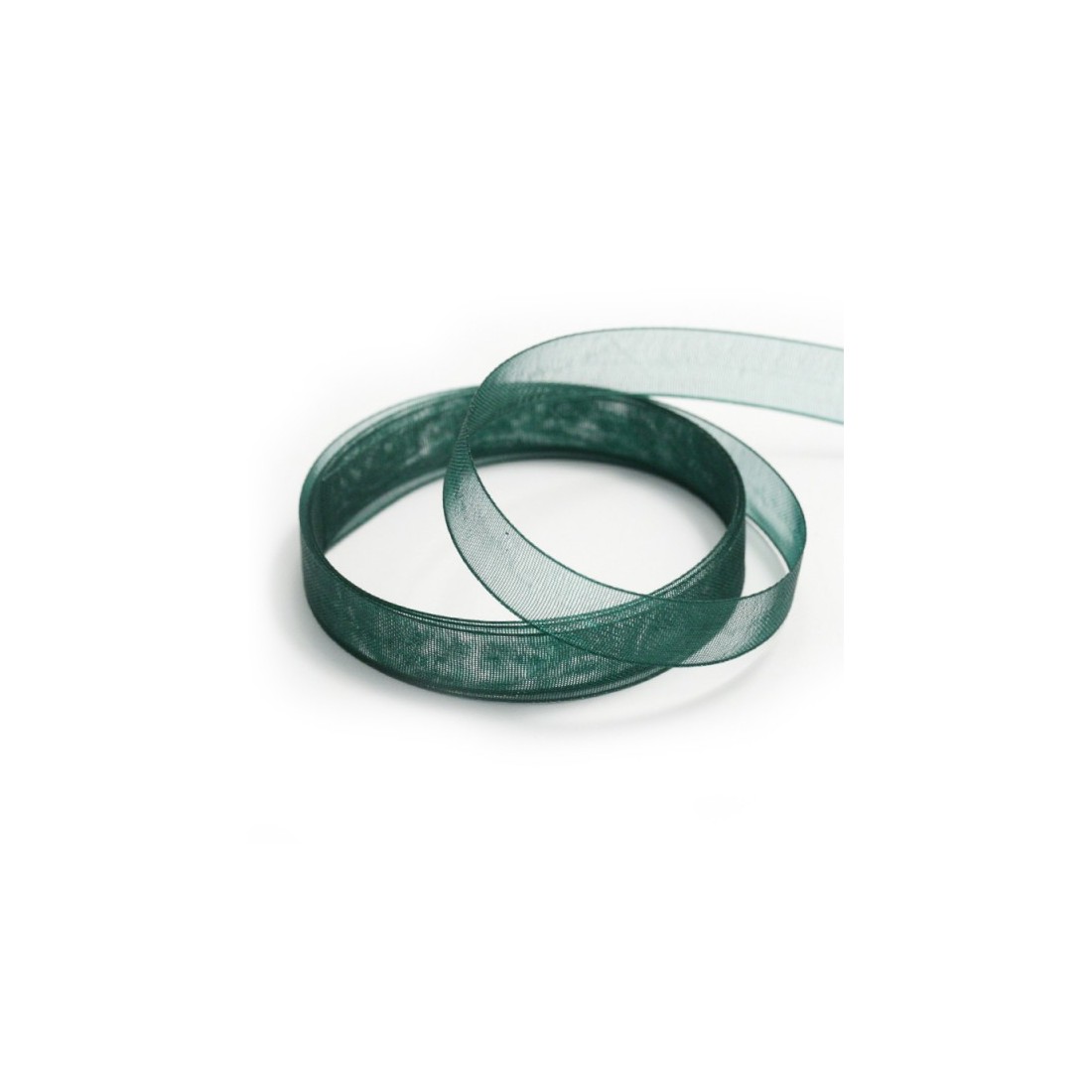 Nastro di organza 15 millimetri per 50 metri. Disponibile in 2 diversi colori: verde scuro e argento.