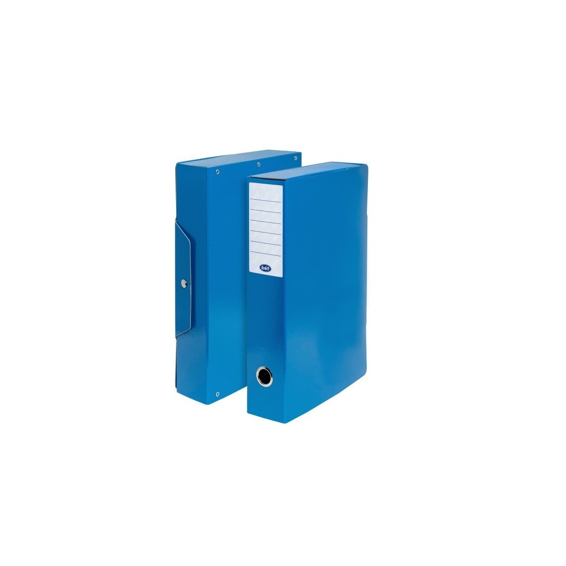 Una vasta gamma di scatole portaprogetti realizzate in robusto presspan biverniciato extra-lucido con finitura goffrata. Dotate di etichette adesive applicate sul dorso.