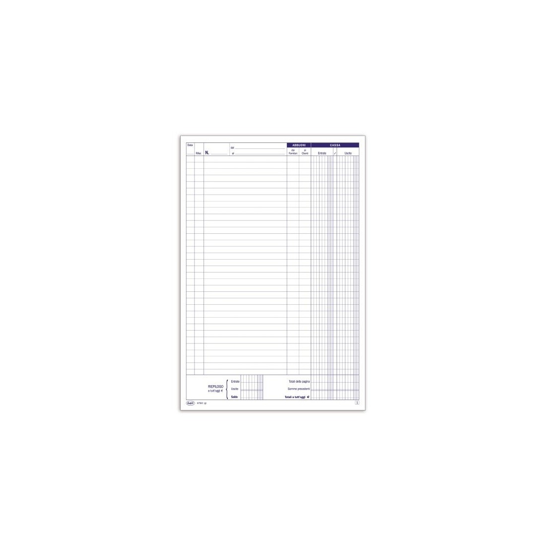 Primanota cassa - Entrate-Uscite-Abbuoni - 29,7 x 21,5