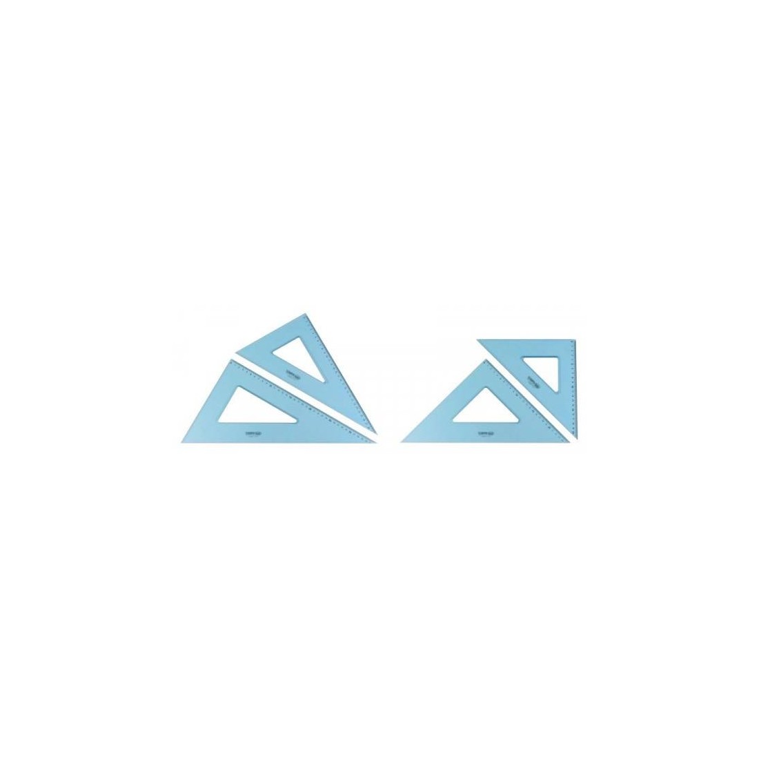 Linea completa di righe e squadre realizzate in materiale plastico antiurto, colore fumé ottico, di grande trasparenza superficiale. La graduazione è realizzata con un procedimento ad incisione ed è molto precisa.