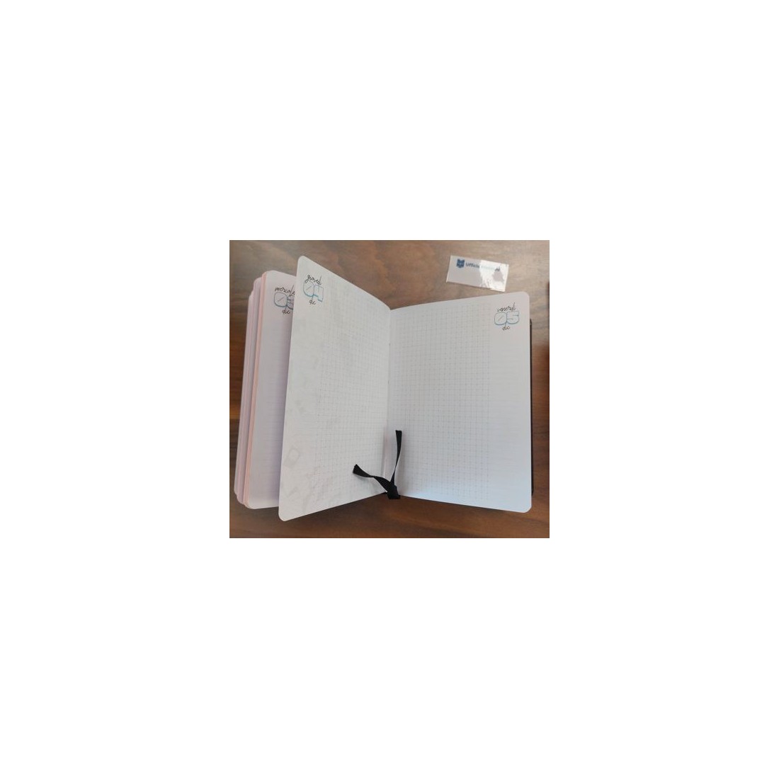 Copertina rigida e opaca con pagine con classici fogli quadrettati.