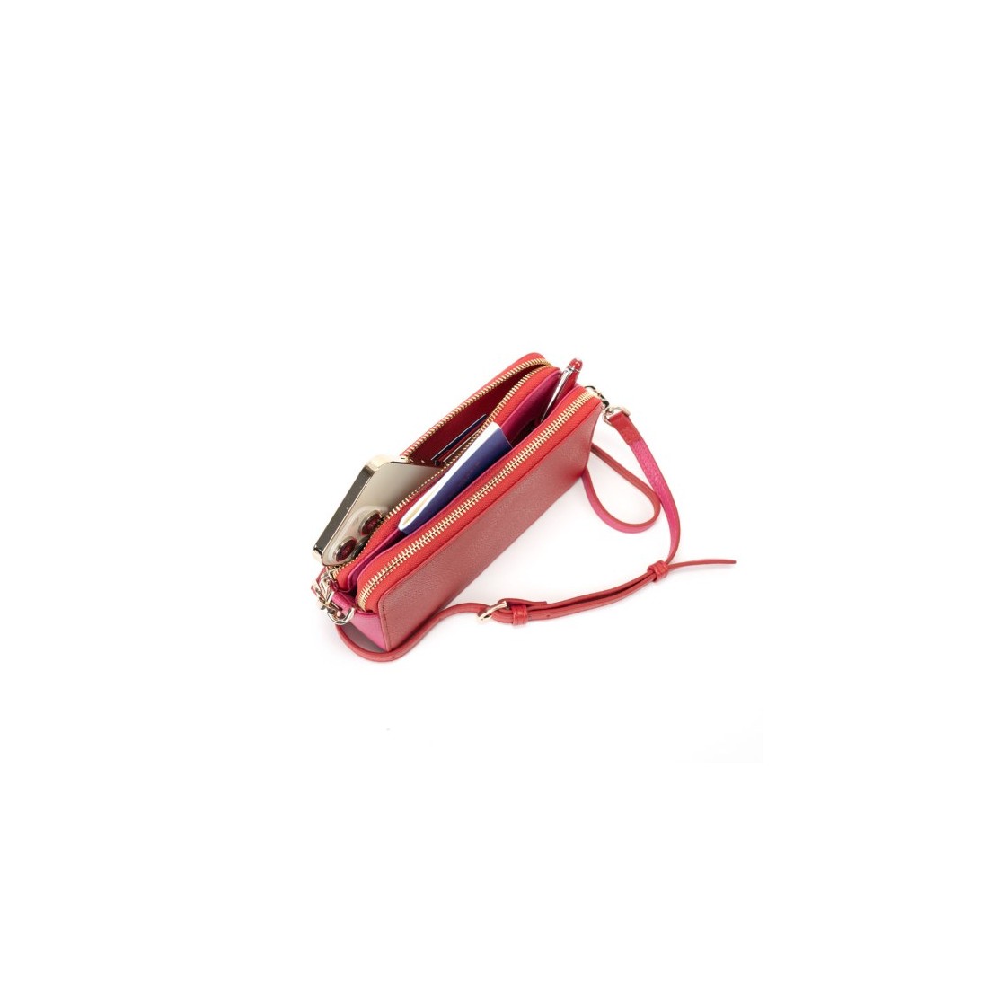 CARATTERISTICHE Tre compartimenti Chiusura con zip Interno: organizzato con tre scomparti di cui 2 chiusi con zip con tre tasche porta card ciascuno e compartimento centrale porta smartphone Portabilità: Leggera e pratica, grazie alla tracolla rimovibile, può essere indossata sia a mano che a tracolla.