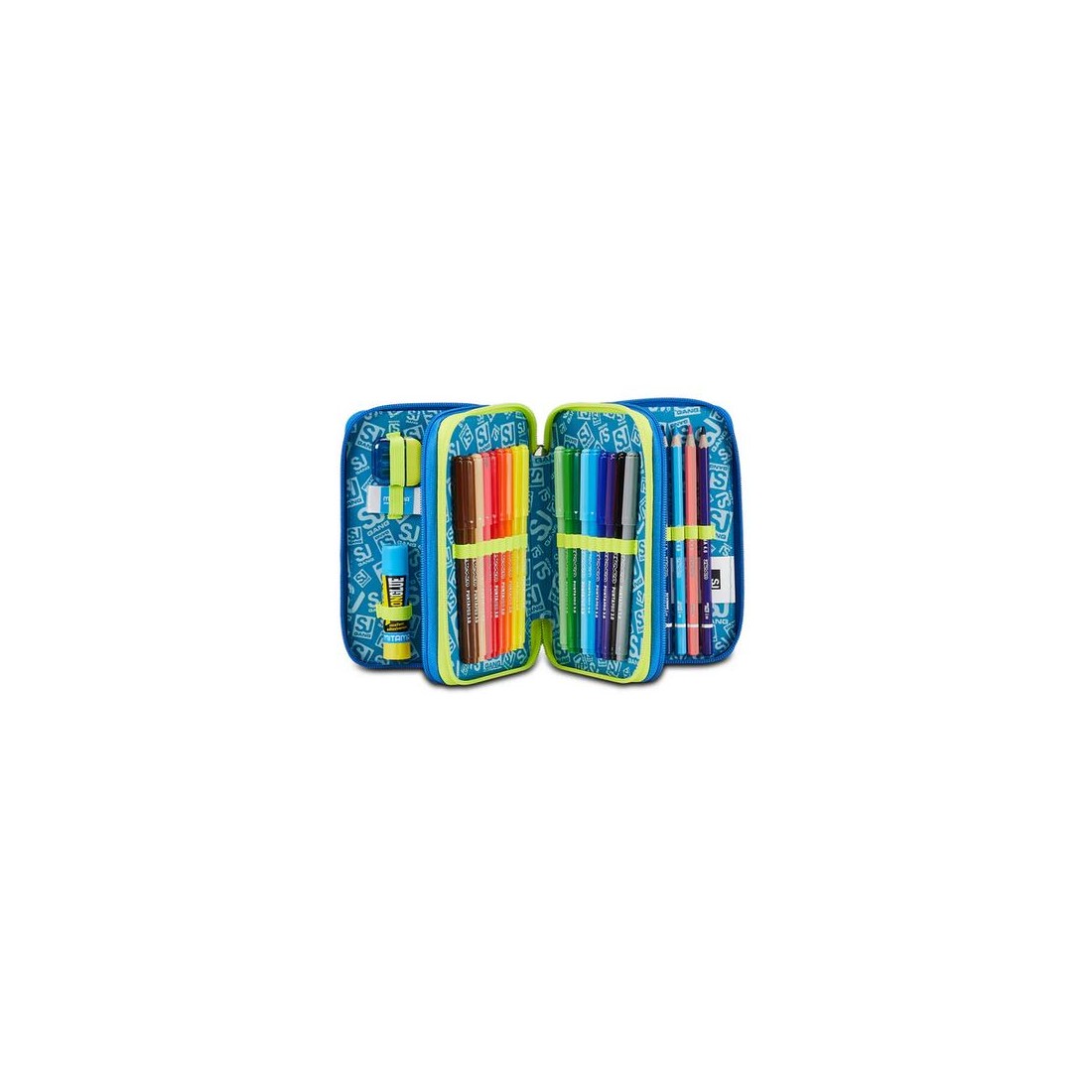 Sono il coloratissimo Astuccio 3 zip SJ Gang. Dotato di 3 scomparti completi di tutto il materiale necessario per fare al meglio i tuoi lavori di scuola, puoi abbinarmi a uno zaino o a un trolley SJ Gang.
