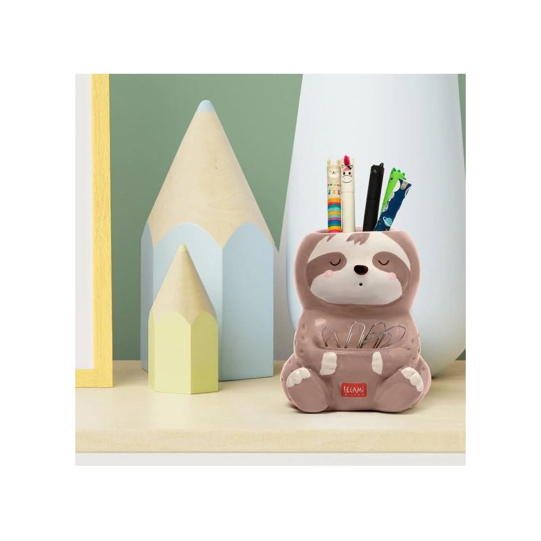I veri amici si vedono nel momento del bisogno… di penne!Di certo potrai contare su Desk Friends, i portapenne in ceramica da scrivania di Legami pronti a servirti con lo strumento più adatto in ogni momento. Scegli quello a tema Dino e sarai il più originale dell’ufficio!12 x 9,7 x 13,5 cm